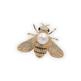 Brooch in 18k gold plated brass hardware, set in diamond simulant,and freshwater pearl.