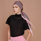 Losange in silk with hand-rolled edges (100%silk). Using a finest mulberry silk, this losange is printed with screen printing technique in twill texture.