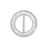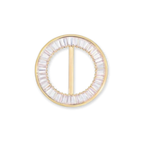 Meticulously crafted in platinum or 18K gold-plated copper, this scarf ring features a baguette-cut diamond simulant.