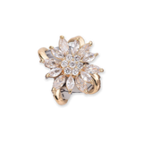 Meticulously crafted in 18k gold or platinum-plated copper, this scarf ring features a radiant bloom of marquise-cut diamond simulants.