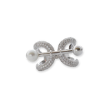 Meticulously crafted in 18K rose gold or platinum-plated copper, this scarf ring features a knot design adorned with pavé-set diamond simulants and a luminous cultured pearl.