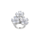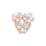 Meticulously crafted in 18K gold or platinum-plated copper, this tarnish-resistant scarf ring is adorned with clusters of pear-cut diamond simulants arranged in a radiant floral composition.