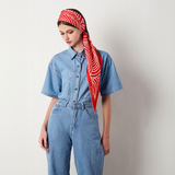 Using a finest mulberry silk, this losange is printed with screen printing technique in satin texture.